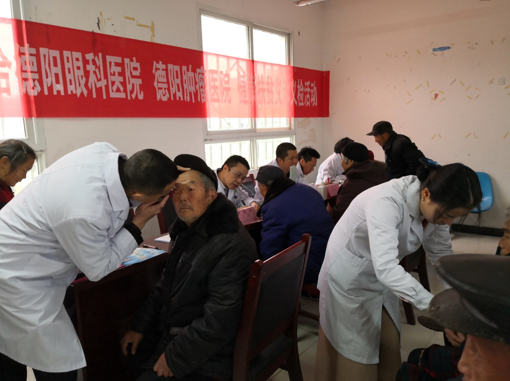 11月28日,市政协机关联合德阳眼科医院、肿瘤医院医务工作者前往中江县合兴乡平桥村开展健康扶贫义诊义检活动。