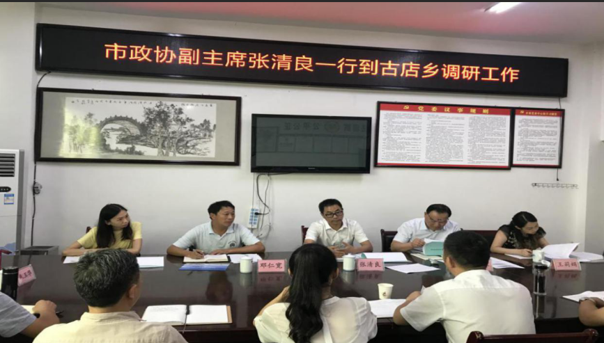 7月12日,市政协副主席张清良、民进德阳市委主委率市科协主席何学军,民进德阳市委相关负责人等赴中江县古店乡开展脱贫攻坚大排查、补短板等相关督导工作并组织研究助力古店产业发展等。