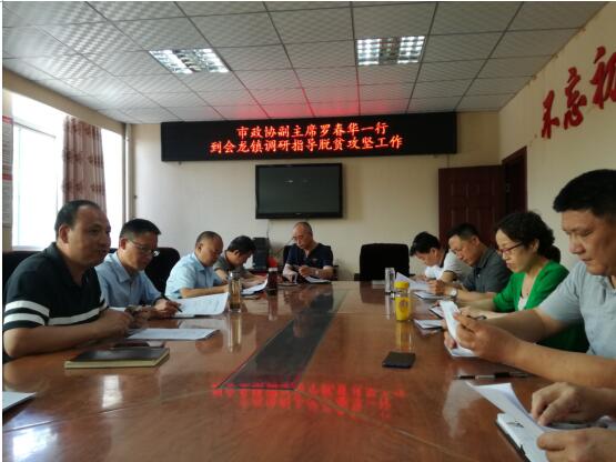 在听取会龙镇脱贫攻坚工作汇报后,罗春华指出,会龙镇脱贫攻坚工作目标清晰、措施有效、成效明显。下一步工作要从四个方面着手,一是市级牵头部门要尽快摸清会龙镇2019年脱贫攻坚工作基本情况,制定有针对性的帮扶计划。二是市级帮扶部门、帮扶企业与会龙镇在工作上要加强协调、沟通,落实帮扶责任。三是市供销社要切实履行组长单位职责,尽快组织帮扶部门、帮扶企业、帮扶干部召开会龙镇脱贫攻坚工作推进会,针对遇到的问题共商解决办法。四是会龙镇党委、政府要对照2018年“省检”“国考”中存在的问题认真整改、补齐短板,确保完成2019年脱贫攻坚工作任务。
