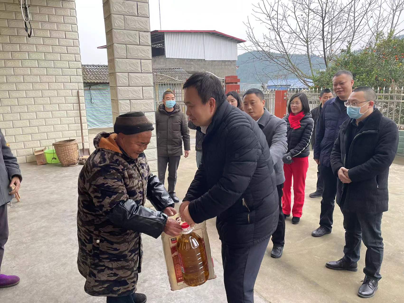 1月25日,市政协副主席汪国华率队赴中江县黄鹿镇慰问困难群众。汪国华副主席一行先后走访慰问了部分困难群众以及黄鹿镇养老院的老人们。慰问中,汪国华副主席关切地询问他们的身体状况和生活状况,深入了解他们生活中存在的困难,送上米面油等慰问品和慰问金,并祝愿他们过上一个快乐祥和的春节。受慰群众对党委政府的关心和帮助表达了感谢,表示今后会更加积极地面对生活中的困难,通过自身的努力不断改善生活状况,提高生活水平,让党委政府放心。市政协社法委、市城管执法局相关领导同志参加此阶段的慰问活动。