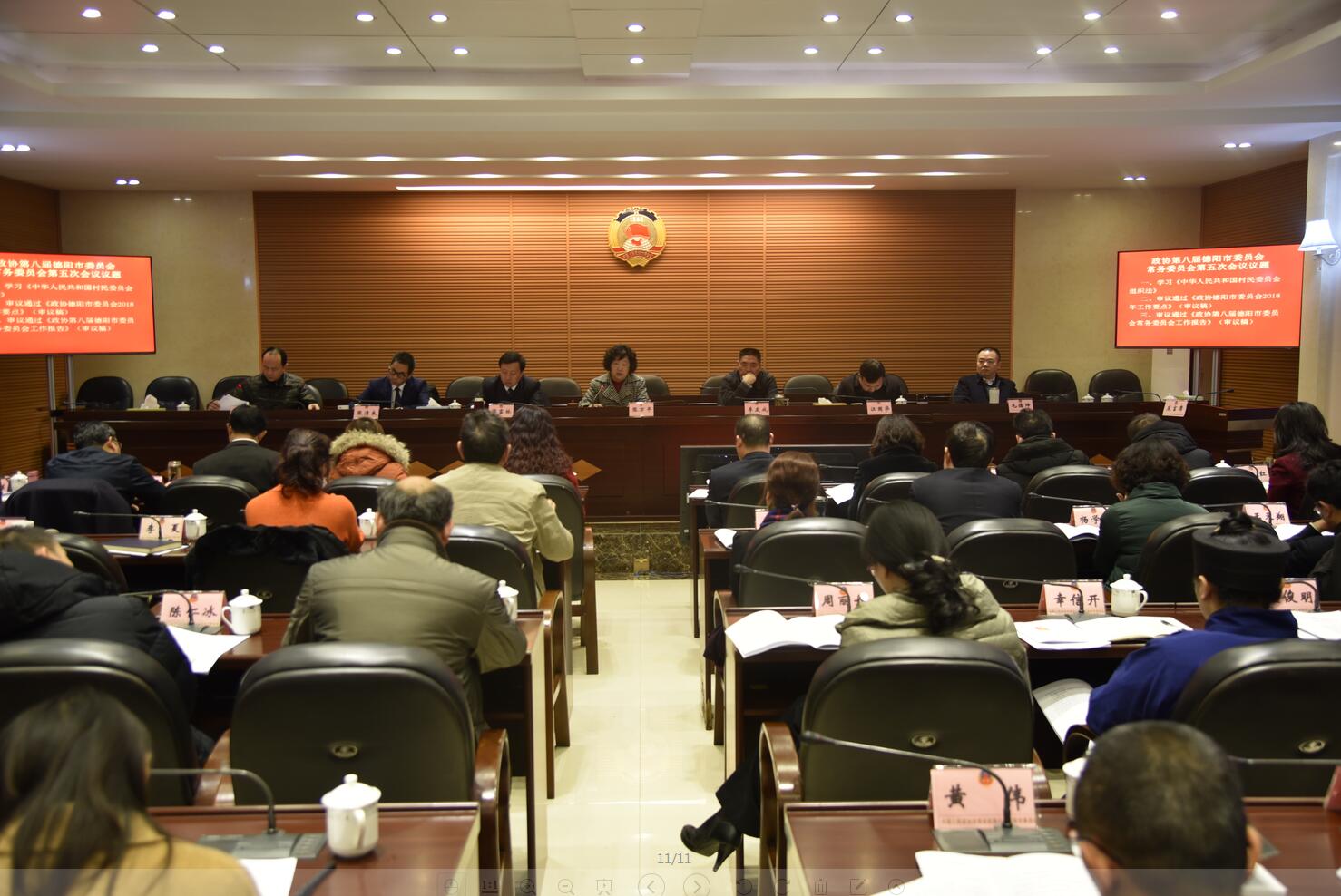 12月27日上午,政协第八届德阳市委员会常务委员会举行第五次会议。市政协主席张万平主持会议,市政协副主席李友成、侯富林、汪国华、张清良、毛德坤和秘书长张蜀出席会议。