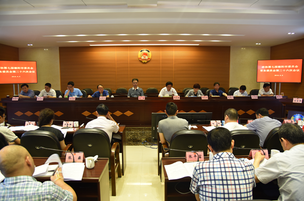 6月6日上午,政协第七届德阳市委员会常务委员会第二十六次会议召开。市政协主席刘哲主持会议。市委常委、常务副市长、市纪委书记冯发贵,市人大常委会副主任蒋国华应邀出席会议。市政协副主席吴玉华、陈晓慈、赵晓平、李友成、刘龙春、侯富林和秘书长陈运兴出席会议。