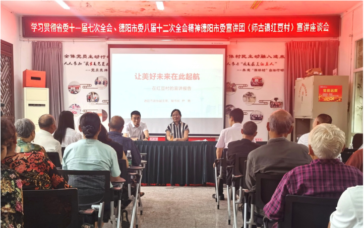 9月11日上午,市政协副主席兼秘书长尹艳前往什邡市师古镇红豆村宣讲省委十一届七次全会精神和市委八届十二次全会