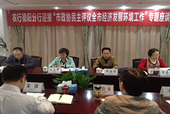 第五评议组到市粮食局、市科知局、农行德阳市分行座谈。