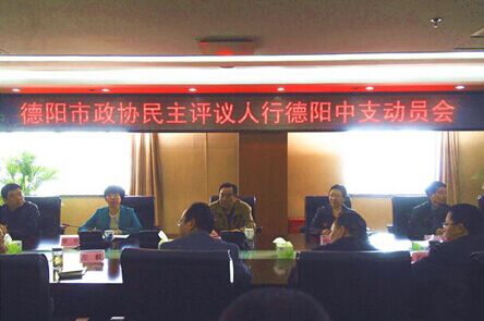 3月19日—23日,德阳经开区管委会、市交通局、市教育局、市水务局、市农业局、市国土局、市环保局、人行德阳中心支行、邮政储蓄德阳市分行、兴业银行德阳支行相继召开迎接市政协民主评议全市经济发展环境工作动员会。市政协副主席、第一评议组组长巫建平,市政协副主席、第六评议组组长谢天佑,市政协副主席、第七评议组组长李友成出席会议。