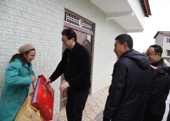 在明月村,刘哲一行先后深入到明月村贫困户谢英伦、黄安旭、谢碧云、尹国权家中走访慰问,将过冬御寒的棉被一一送到他们手中,并鼓励贫困群众要坚定脱贫信心,在党和政府的关心帮助下用勤劳的双手脱贫致富。