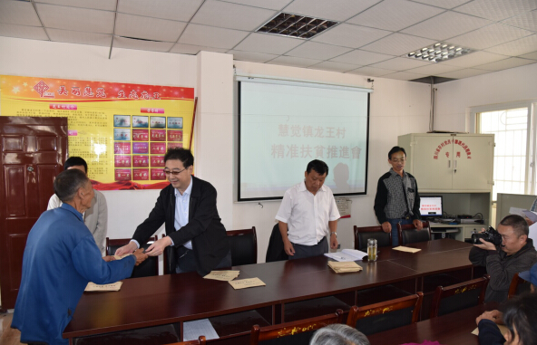 座谈后,刘哲将在2015年国家“扶贫日”募捐活动中筹得的捐款30000元,现场捐赠给明月村和龙王村贫困户,勉励困难群众树立信心,争取早日脱贫。