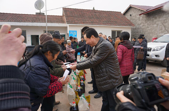 座谈会后,谢天佑一行为14户贫困户、6户贫困大学生送上了生活物资、慰问金和新春祝福,确保他们过一个欢乐祥和的春节。